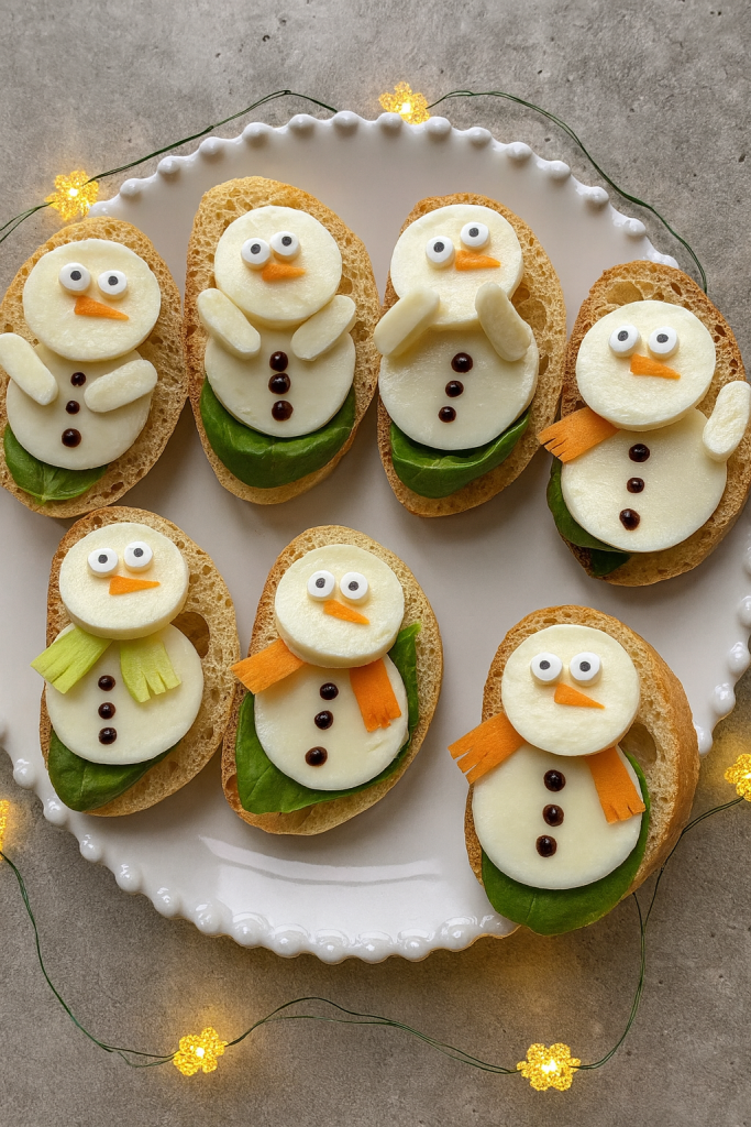 A Natale non conta solo il gusto, ma anche l’atmosfera che sappiamo creare attorno alla tavola. Le tartine a forma di pupazzo di neve sono un’idea semplice, scenografica e irresistibile, perfetta per stupire ospiti grandi e piccoli. Basta un po’ di fantasia e pochi ingredienti per portare in tavola un antipasto che profuma di festa e che fa sorridere al primo sguardo. Morbide fette di pane tostato si trasformano nella base ideale per ospitare formaggio filante, verdure colorate e piccole decorazioni che danno vita a teneri pupazzetti di neve commestibili. La preparazione è veloce e non richiede particolari abilità culinarie, ma regalerà un risultato sorprendente, in pieno spirito natalizio.